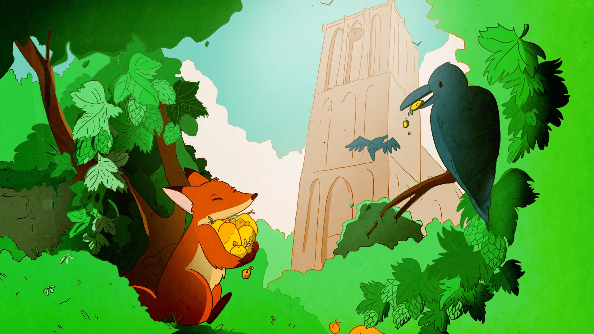 De legende van de Sluwe Vos vindt zijn oorsprong in de oude fabel Raaf & Vos, waarin slimheid het wint van ijdelheid. Hoog in de boom zit de raaf, trots en zelfverzekerd, met iets kostbaars in zijn snavel. De vos kijkt op, prijst de pracht en weet met zachte woorden precies te raken waar het schuurt. Wanneer de vogel zich laat meeslepen door vleierij, laat hij zijn kostbare tropisch fruit vallen. De vos wacht rustig af, glimlacht en grijpt zijn kans. Die sluwe list vormt de ziel van dit bier. Ook Sluwe Vos lokt je eerst vriendelijk naar binnen, maar laat pas daarna zijn ware karakter zien. Een bier met een knipoog naar het sprookje van vroeger, vertaald naar een moderne, uitgesproken Double IPA.