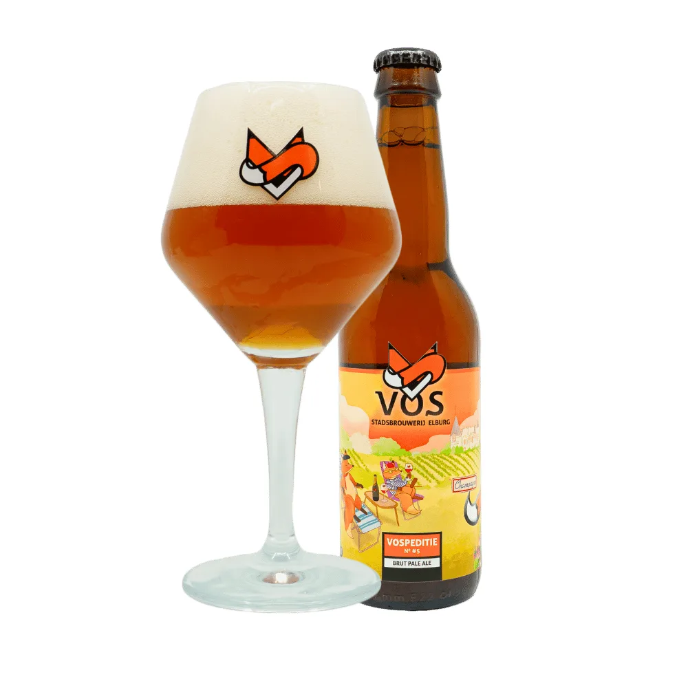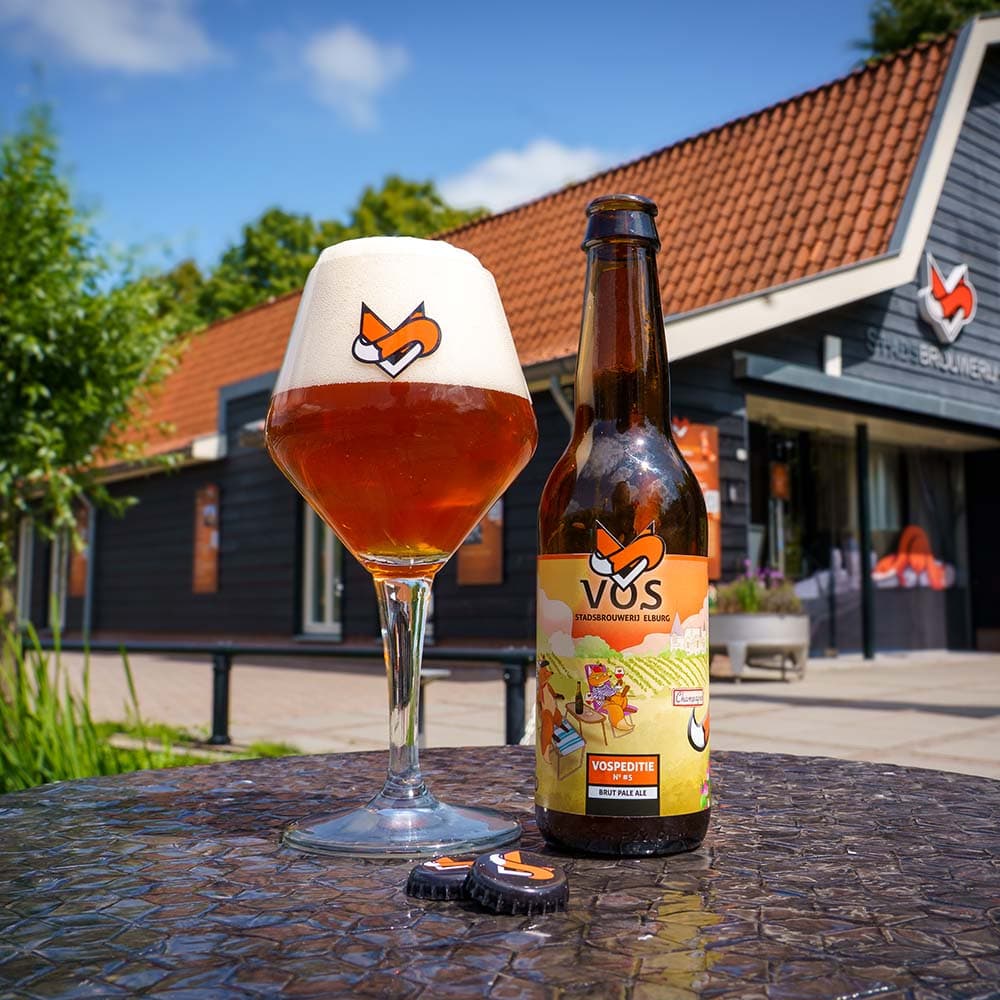 Terug in Elburg besloot hij die sprankelende finesse te vertalen naar bier. Het resultaat is Vospeditie No5 – Brut Pale Ale: lichtvoetig, droog, en verfrissend anders. Gebrouwen met champagnegist en op smaak gebracht met framboos, is dit bier een ode aan elegantie – maar wel met een vossenstaartje. De smaak is droog en fris, met een aangenaam zuurtje dat perfect past bij de champagnegist. De toevoeging van framboos geeft het bier een licht roze gloed en een fruitig aroma dat doet denken aan rosé brut. Een vleugje tropisch fruit maakt het compleet. De zachte, subtiele bubbel maakt het bier feestelijk, zonder zwaar of zoet te worden.